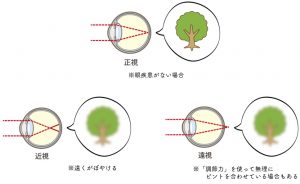 (年齢が若いと”調節”という機能を使うことで無理やりピントを合わせようとすることがあります。