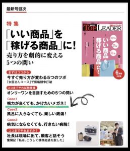 6月1日発売、 日経BP様が発行するビジネス・マネー誌日経トップリーダー