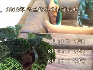 みなさまこんにちは。 暑い日が続いていますが、いかがお過ごしでしょうか。 飯塚店・銀座店ともに8月13(月)14(火)15(水)はお盆休みとさせていただきます。 ご予約・メンテナンスはお早めにご連絡くださいませ。 よろしくお願いいたします。