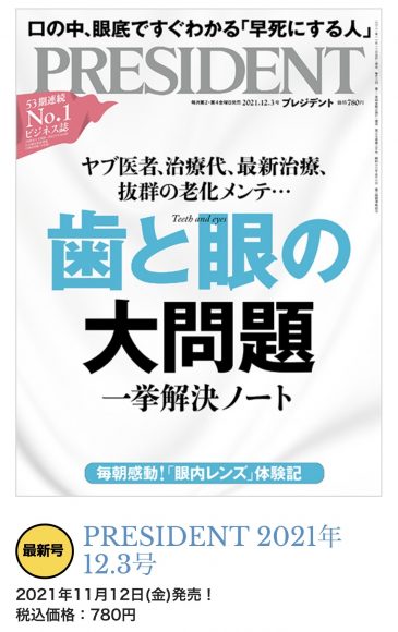 2021年11月12日発刊の「プレジデント」に掲載頂きました!