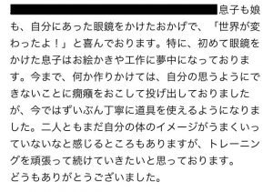 お子様の眼鏡が到着したお母様より、メッセージが届きました📨
