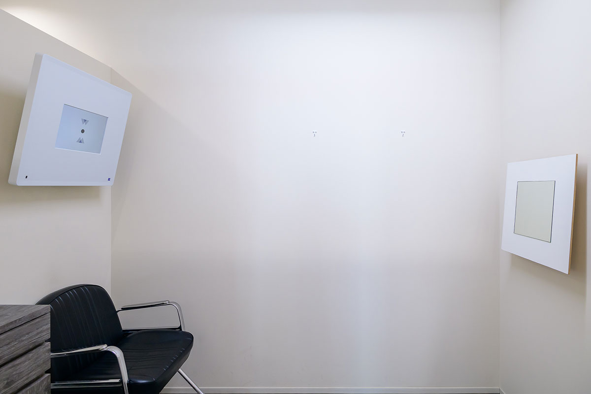 日常自然視に近い状態での検査をするため、検査環境(照明、視標の種類、検査距離など)を厳密に規定しております。ドイツではマイスターという検眼医の資格者のみが取り扱う事ができ、チャートの意味合いなど大変奥深いため日本ではほとんど使用できる者はいないのです。